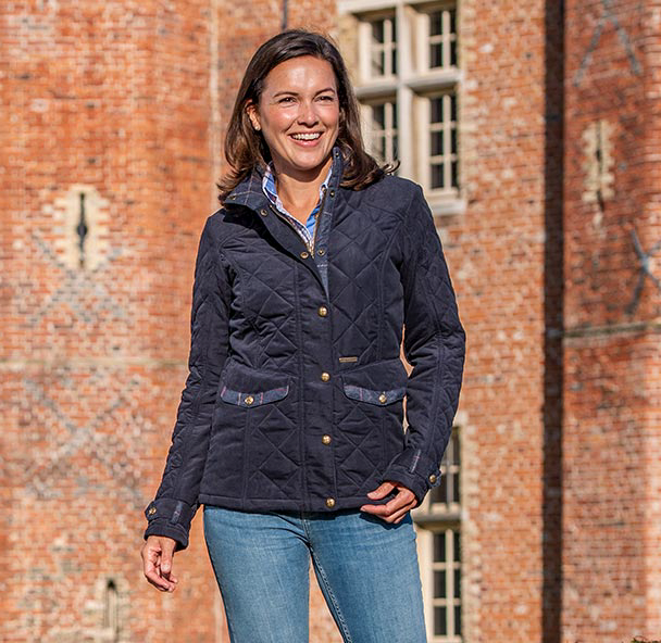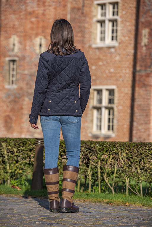 After the success of the popular Hepburn, Baleno have designed a new fashionable quilted jacket introducing trimmings in printed tweed accents. The Halifax is tailored in the same subtle 2-tone, soft handle showerproof fabric. The lower back detail has press-studs that can be used for extra comfort. The cuffs feature adjustable straps.