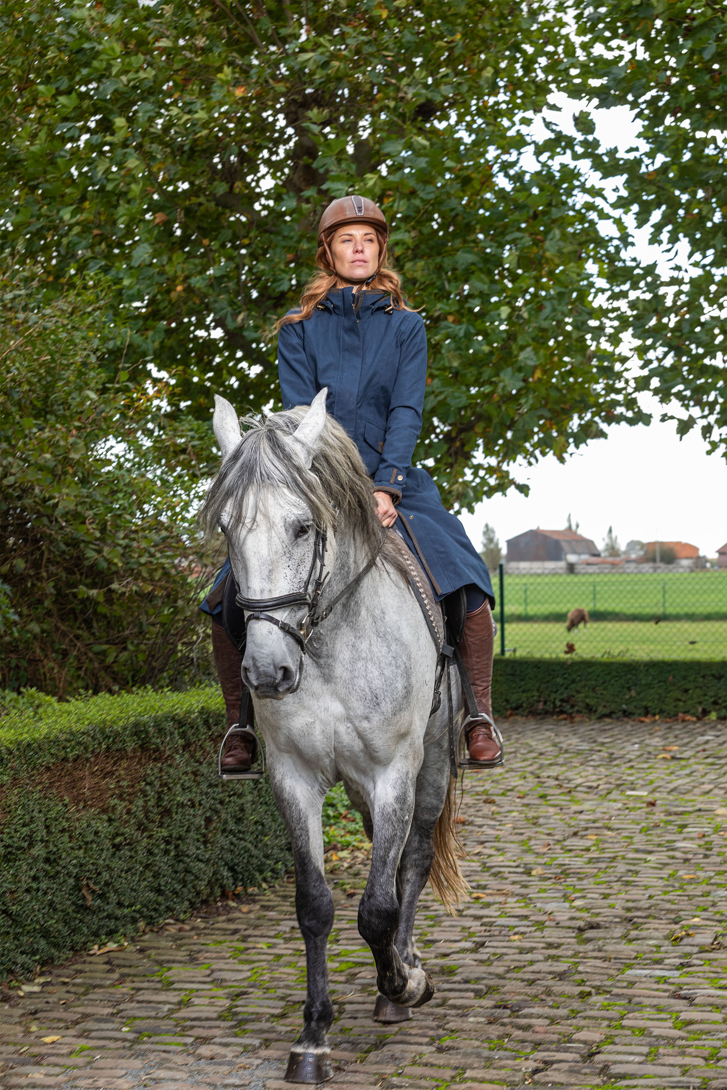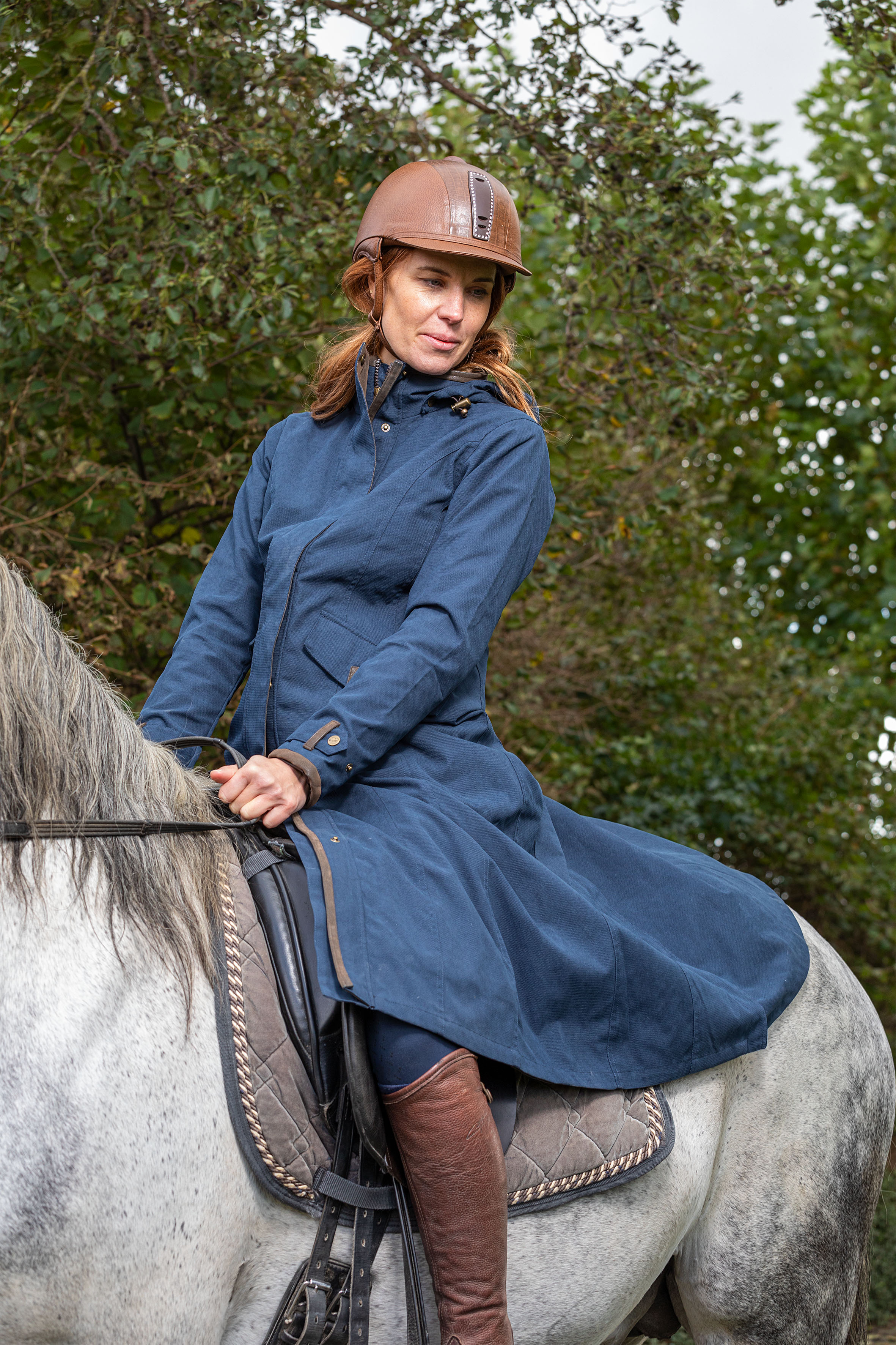 This practical yet stylish ladies long coat is both waterproof and breathable. The style is influenced by the classic outback drovers coat and is manufactured in a tough and durable fabric. Ladies will love the elegant feminine fit of this coat. This might be the best long raincoat you can get for dog walking, horse riding, shooting and other countryside pursuits. For extra protection against the elements, the Kensington features a detachable adjustable hood and a pommel flap. Our interactive Sally/Sarah fleeces can be zipped in for extra warmth on cold days. The coat flatters and flows as you move. Back length: 120 cm.
